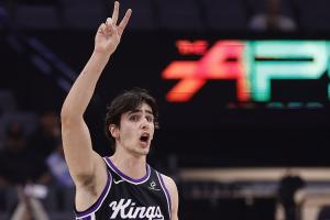 体育资讯3月23日讯 NBA常规赛,国王126-122力克篮网。42号秀雷诺此役出战36分钟,13中10,罚球4中2砍下22分10篮板2助攻1抢断1盖帽,正负值+1。