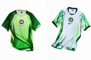 尼日利亚队新款主场球衣采用浅绿色为底色搭配深绿色拼接的设计,客场球衣则采用白色底色加绿色火焰的设计。