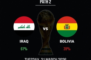 世预赛洲际附加赛:伊拉克晋级概率61%,玻利维亚39%