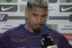 体育资讯3月23日讯 西甲第29轮比赛,阿劳霍破门,巴萨主场1-0击败巴列卡诺,赛后阿劳霍接受了媒体的采访。
