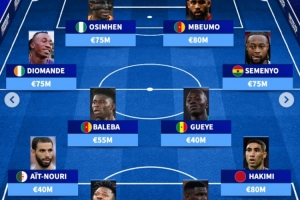 德转非洲最贵阵:奥斯梅恩、姆伯莫双前锋,阿什拉夫在列